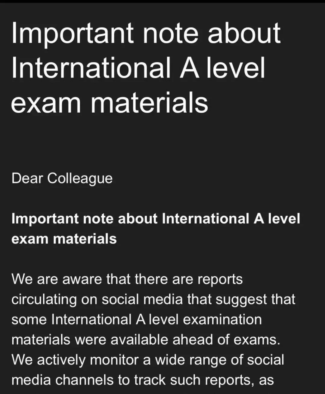 对此,爱德思(Edexcel)也迅速发出了官方声明,表示已在各大社交媒体平台上密切监测类似信息,一旦发现涉及考试内容泄露的情况,便会立即展开调查,并对相关不实报道进行核查。