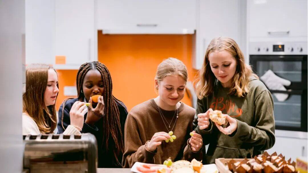 食堂每天用季节性食材现做餐点,菜单三周期轮换,热菜、冷菜、素食和国际菜系都兼顾。晚餐偏家常风,温暖又均衡。学校有驻校营养师,考试周还会贴心提供营养小贴士。餐厅不仅是吃饭的地方,更是寄宿生社交的“客厅”,可以围坐在餐桌边,谈天说地、建立友谊。