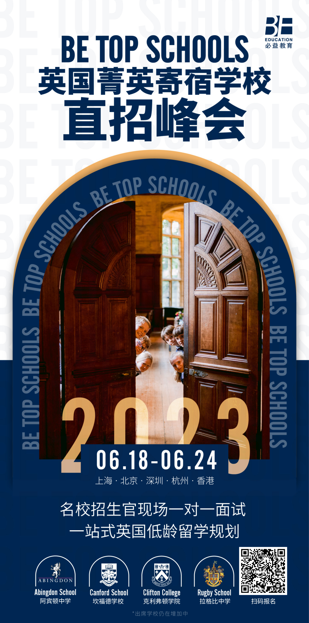 BE Top Schools英国菁英中学招生峰会6月两场即将召开!对话招生官,汲取资深教师建议,了解心意目标学校招生要求……必益年度教育展不容错过!